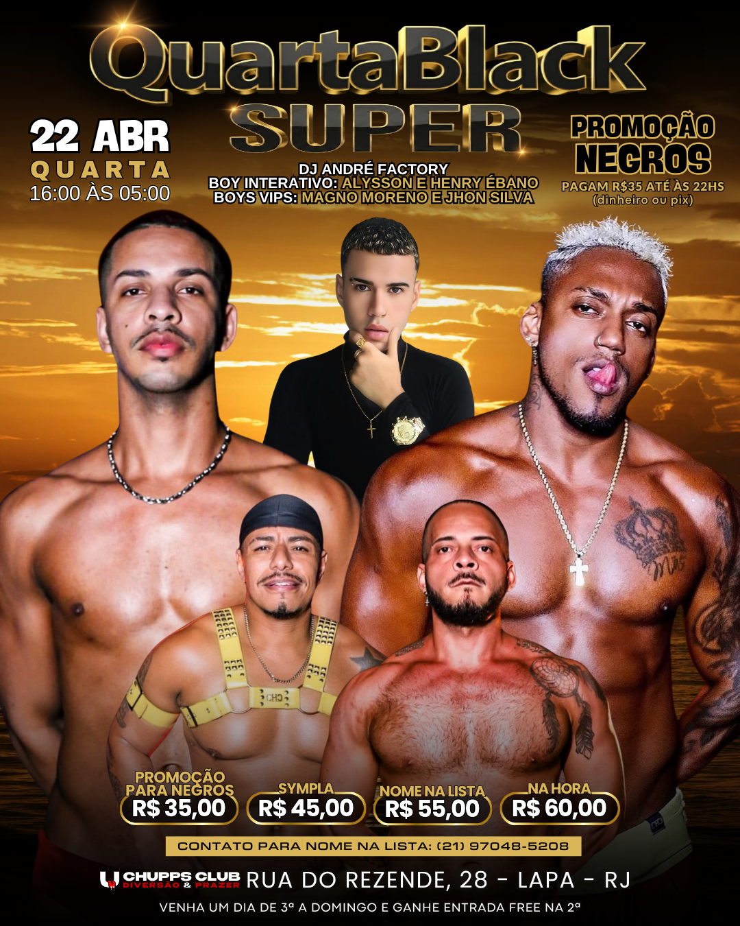 Quarta-feira 15/04/2026 Quarta-feira 15/04/2026 melhorweb2026-04-13T10:40:28-03:0020/09/2025 17:40|Categories: Quarta-feira|Tags: Grupo Chuppix, Roda de Samba de Cueca| Festa Quarta Black – Quartas – 16hs às 23hs Comprar Ler Mais 0